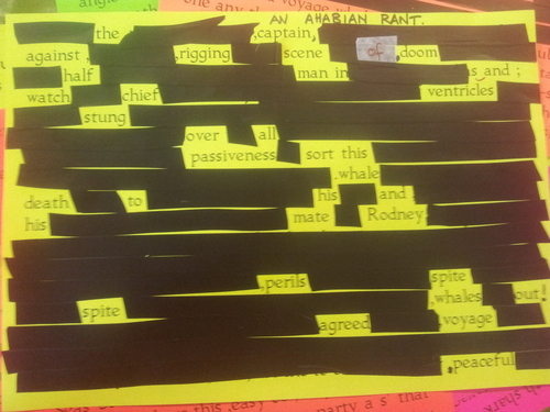 Besides the marathon reading last weekend there were all kinds of other Moby-Dick related events and activities going on at the Merseyside Maritime Museum and at the Museum of Liverpool. One of these was a poetry workshop run by Nathan Jones, where children and their parents took pages from the novel and created poems from them. Nathan has a write-up on his blog, Syntax Factories.